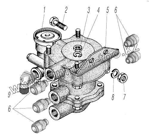 Каталог запасных частей к технике: УралАЗ УРАЛ-43204-1153-70. Установка клапана прицепа