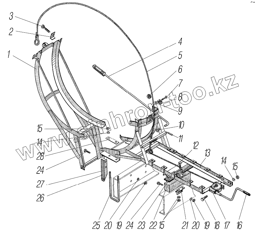 Каталог запасных частей к технике: УралАЗ УРАЛ-43204-1153-70. Вертикальный держатель запасного колеса