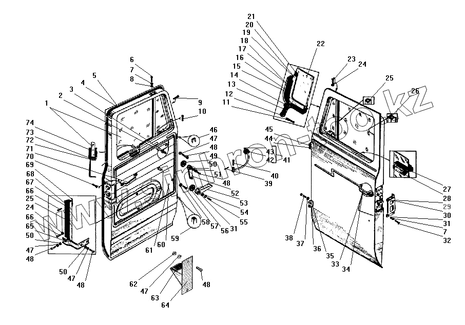Каталог запасных частей к технике: УралАЗ УРАЛ-43206-41. Двери кабины