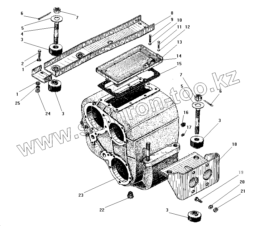 Каталог запасных частей к технике: УралАЗ УРАЛ-43206-41. Картер и подвеска раздаточной коробки