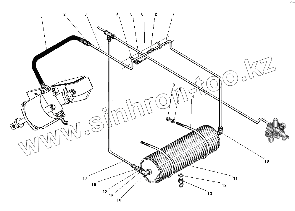 Каталог запасных частей к технике: УралАЗ УРАЛ-43206-41. Пневмопривод выключения сцепления