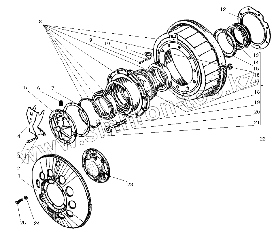 Каталог запасных частей к технике: УралАЗ УРАЛ-43206-41. Ступица колеса и тормозной барабан