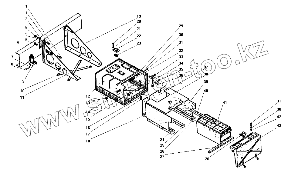 Каталог запасных частей к технике: УралАЗ УРАЛ-43206-41. Установка аккумуляторных батарей