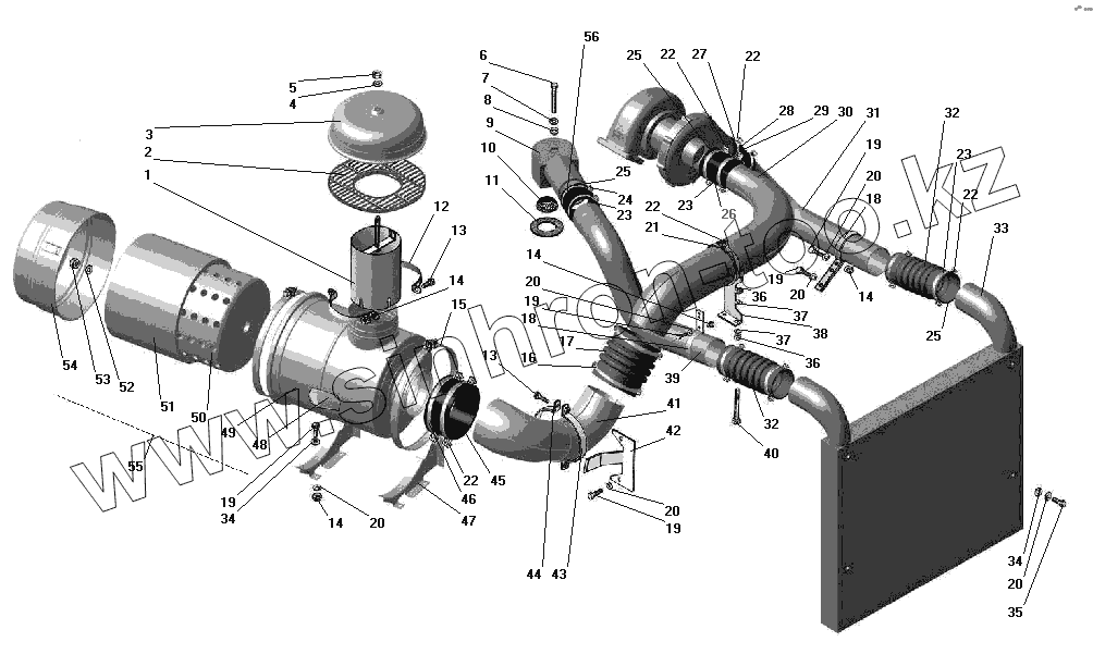 Каталог запасных частей к технике: УралАЗ УРАЛ-43206-41. Воздухопровод с воздушным фильтром