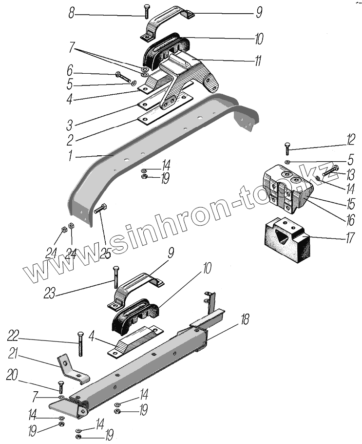 Каталог запасных частей к технике: УралАЗ УРАЛ-4320-0971-58. Подвеска двигателя