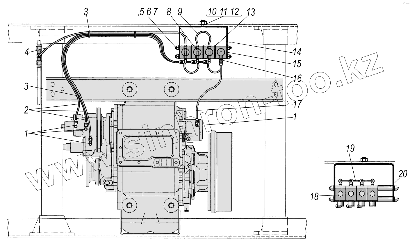 Каталог запасных частей к технике: УралАЗ УРАЛ-4320-0971-58. Установка пневмоуправления раздаточной коробки