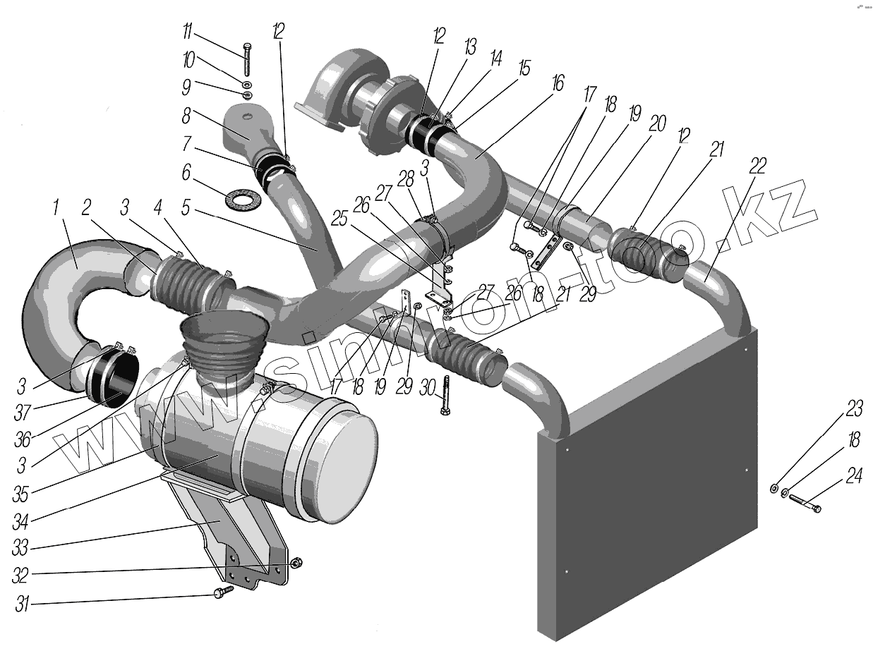 Каталог запасных частей к технике: УралАЗ УРАЛ-4320-1951-58. Воздуховод с воздушным фильтром