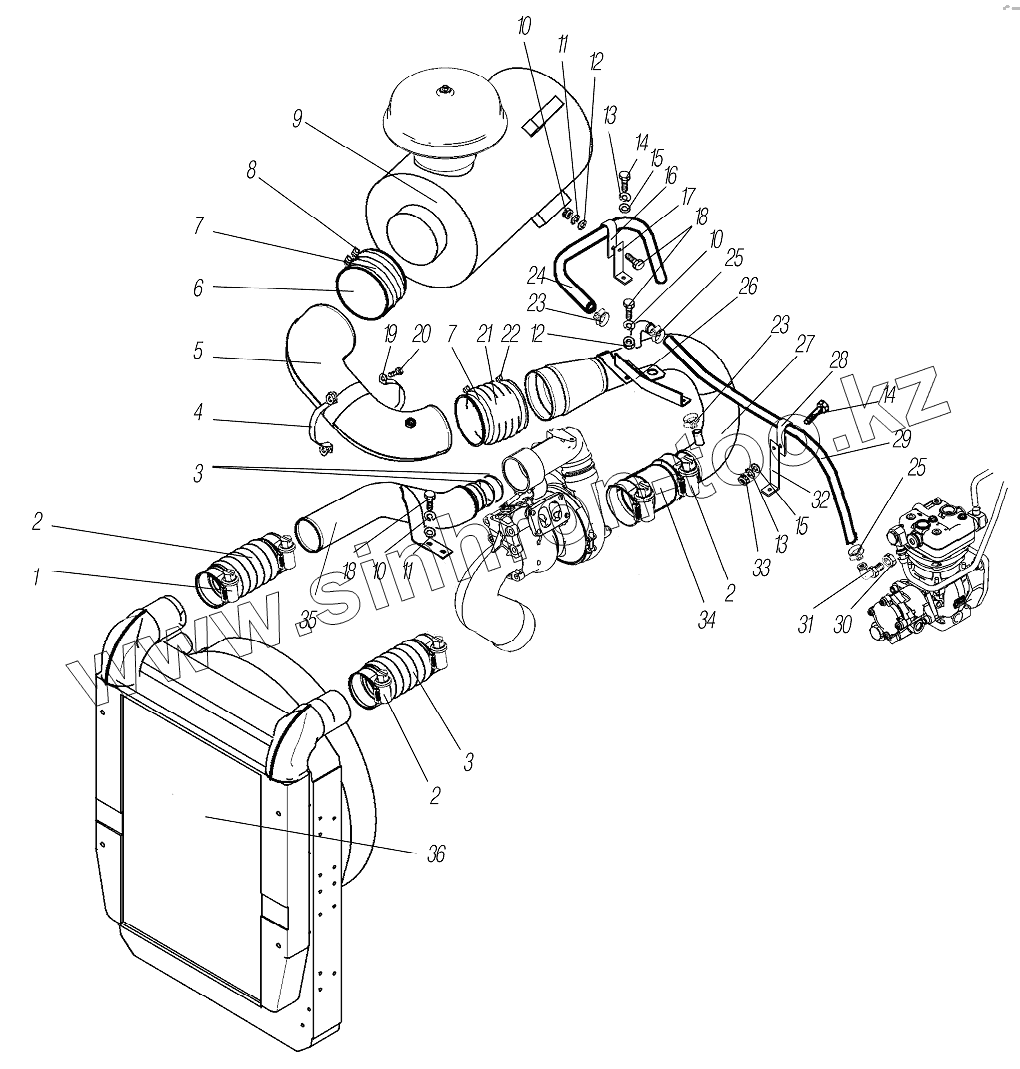 | 35 | 4320Я5-1109114 | Воздуховод к охладителю наддувочного воздуха | |