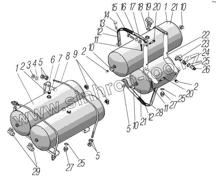 Каталог запасных частей к технике: УралАЗ УРАЛ-4320-1958-70И. Установка воздушных баллонов