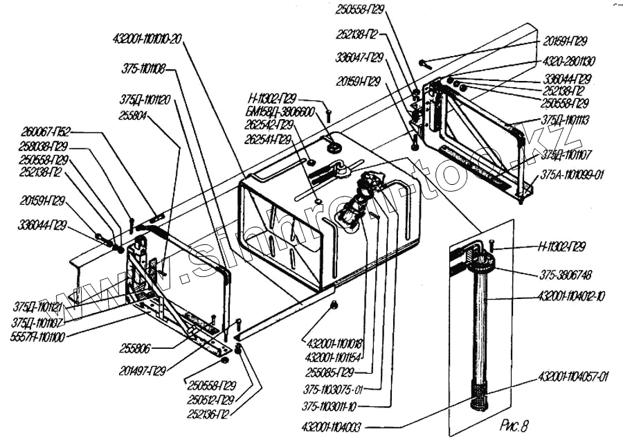 Каталог запасных частей к технике: УралАЗ УРАЛ-4320-31. Основной топливный бак