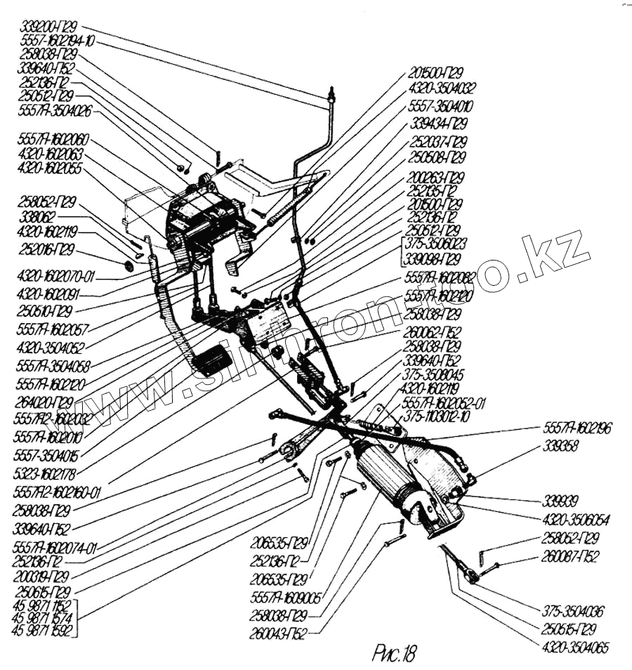 Каталог запасных частей к технике: УралАЗ УРАЛ-4320-31. Привод педалей сцепления и тормоза