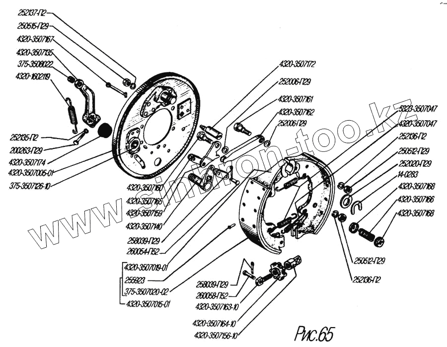 Каталог запасных частей к технике: УралАЗ УРАЛ-4320-31. Стояночный тормоз
