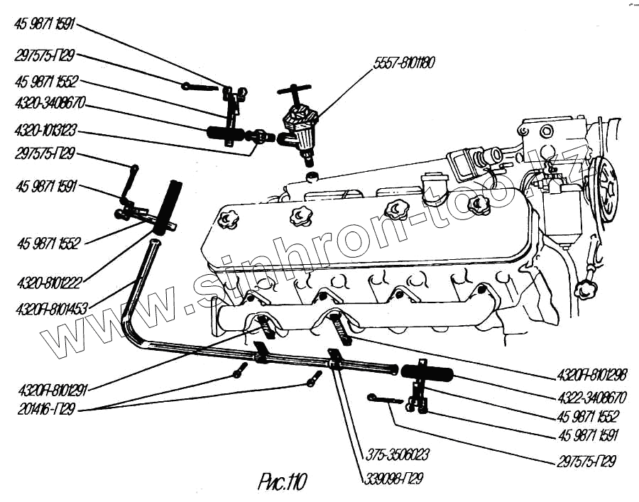Каталог запасных частей к технике: УралАЗ УРАЛ-4320-31. Трубопроводы системы отопления кабины
