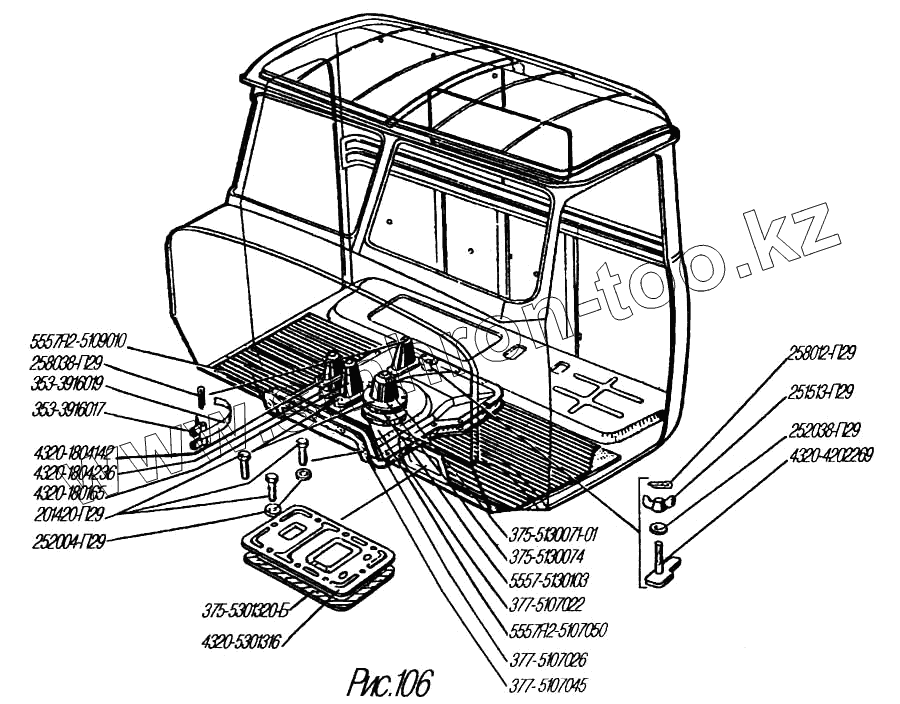 Каталог запасных частей к технике: УралАЗ УРАЛ-4320-31. Уплотнители рычагов и коврики пола кабины