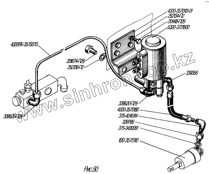 Каталог запасных частей к технике: УралАЗ УРАЛ-4320-31. Установка клапана с трубками