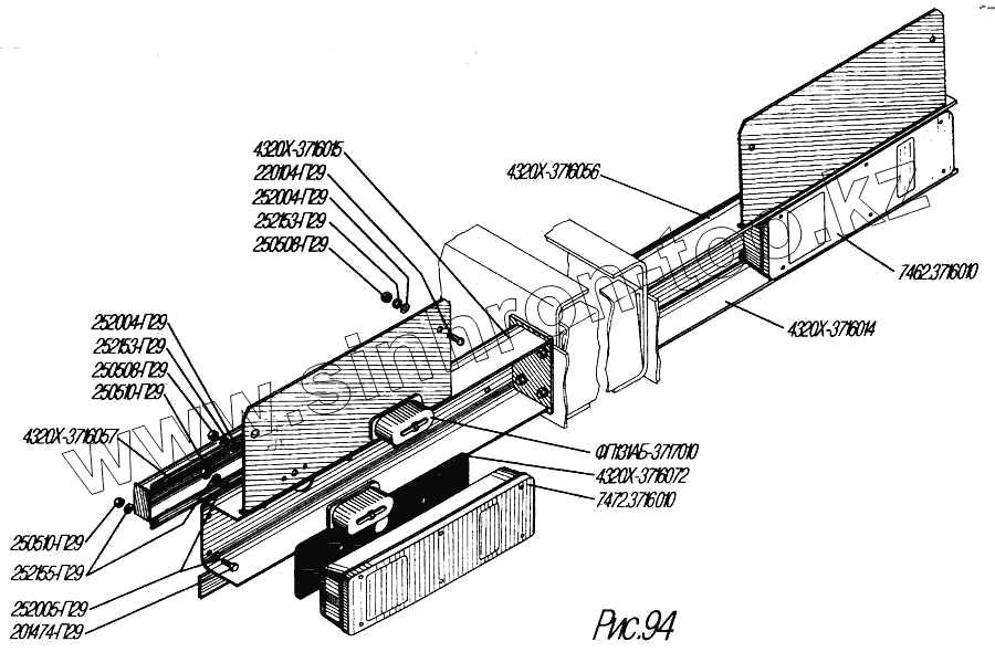 Каталог запасных частей к технике: УралАЗ УРАЛ-4320-31. Установка задних осветительных приборов