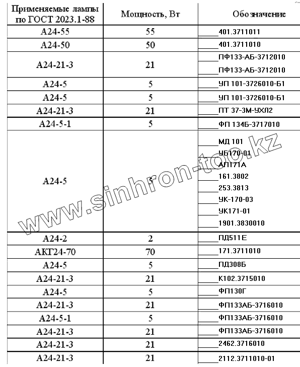 Каталог запасных частей к технике: УралАЗ УРАЛ-4320-31. Автомобильные лампы (МО)