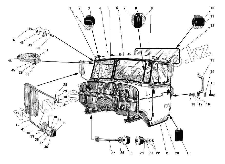 Каталог запасных частей к технике: УралАЗ УРАЛ-4320-31. Кабина в сборе