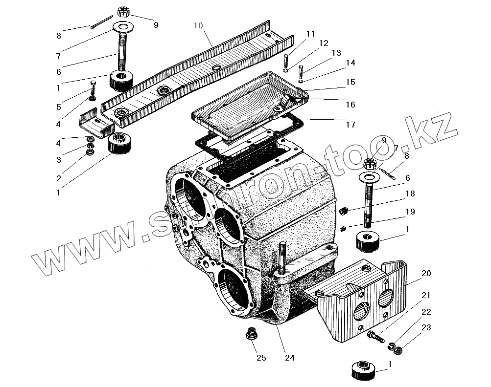 Каталог запасных частей к технике: УралАЗ УРАЛ-4320-31. Картер и подвеска раздаточной коробки