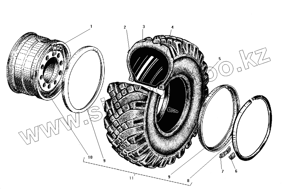 Каталог запасных частей к технике: УралАЗ УРАЛ-4320-31. Колесо и шина
