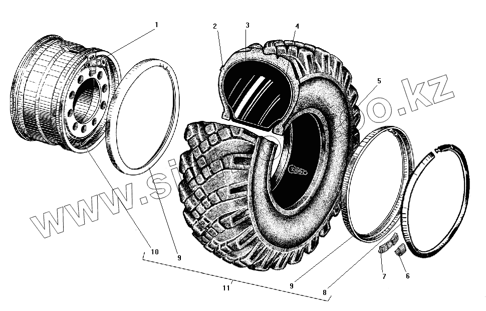 Каталог запасных частей к технике: УралАЗ УРАЛ-4320-31. Колесо и шина (для МО)