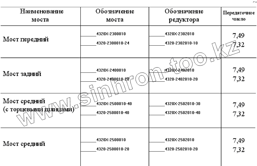 Каталог запасных частей к технике: УралАЗ УРАЛ-4320-31. Номенклатура мостов без АБС и БМКД