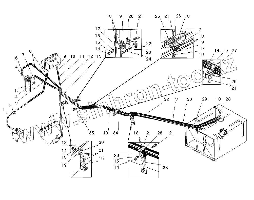 Каталог запасных частей к технике: УралАЗ УРАЛ-4320-31. Трубопроводы и шланги системы питания