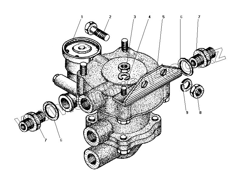 Каталог запасных частей к технике: УралАЗ УРАЛ-4320-31. Установка клапана прицепа с клапаном обрыва