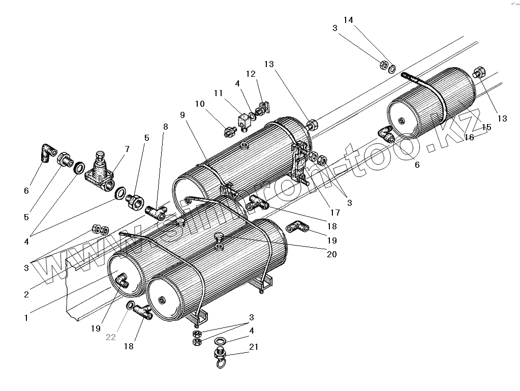 Каталог запасных частей к технике: УралАЗ УРАЛ-4320-31. Установка воздушных баллонов без АБС