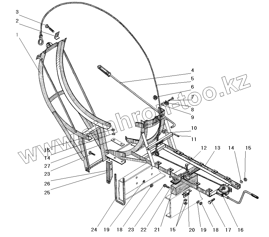 Каталог запасных частей к технике: УралАЗ УРАЛ-4320-31. Вертикальный держатель запасного колеса