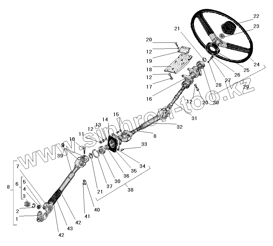 Каталог запасных частей к технике: УралАЗ УРАЛ-4320-41. Колесо и вал рулевого управления