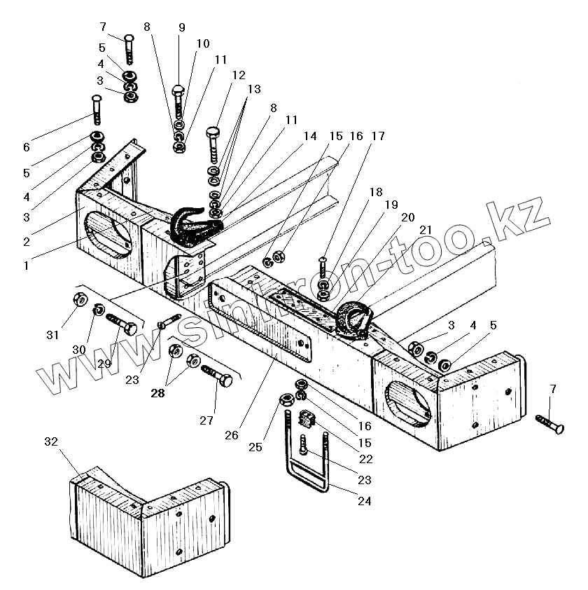 Каталог запасных частей к технике: УралАЗ УРАЛ-4320-41. Передний буфер и буксирные крюки