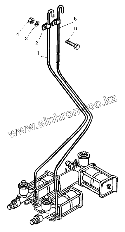 Крепление трубопроводов и шлангов пневмогидравлического привода рабочих тормозов (Без АБС см. Приложение №1)