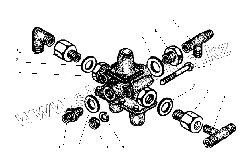 Каталог запасных частей к технике: УралАЗ УРАЛ-4320-41. Установка тройного защитного клапана
