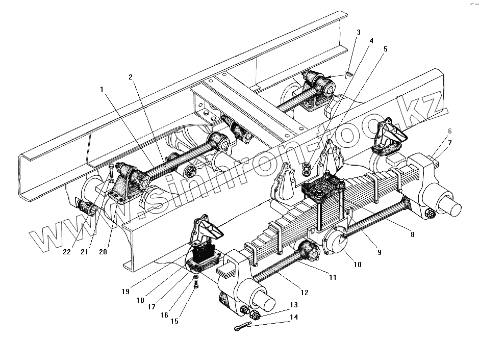 Каталог запасных частей к технике: УралАЗ УРАЛ-4320-41. Задняя балансирная подвеска