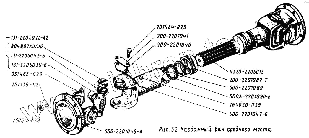 Каталог запасных частей к технике: УралАЗ УРАЛ-4320. Карданный вал среднего моста