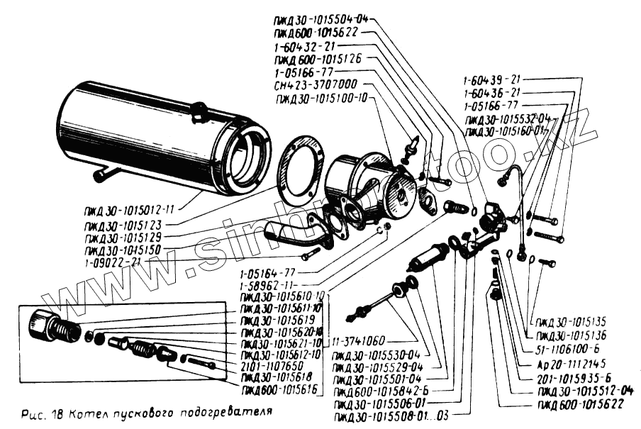 Каталог запасных частей к технике: УралАЗ УРАЛ-4320. Котел пускового подогревателя