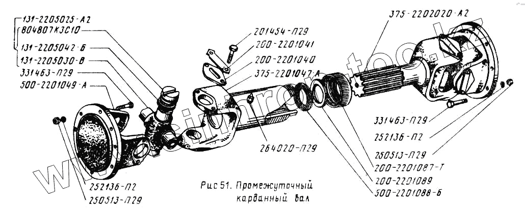 Каталог запасных частей к технике: УралАЗ УРАЛ-4320. Промежуточный карданный вал