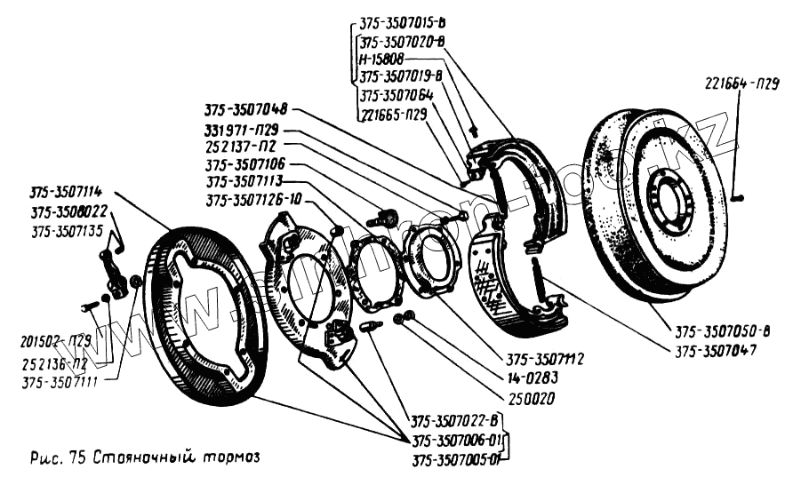 Каталог запасных частей к технике: УралАЗ УРАЛ-4320. Стояночный тормоз