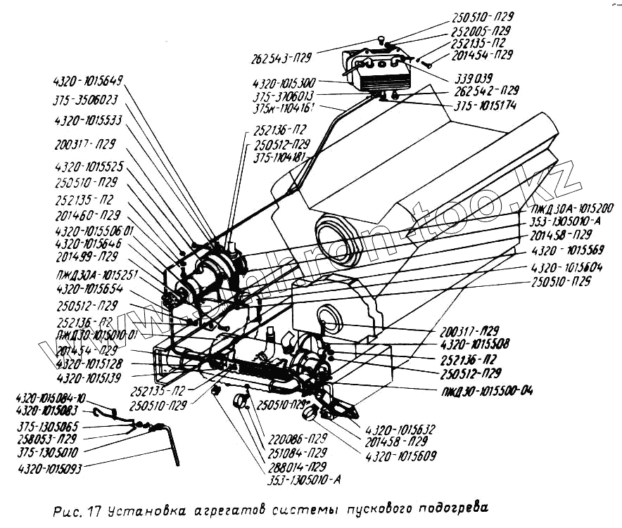 Каталог запасных частей к технике: УралАЗ УРАЛ-4320. Установка агрегатов системы пускового подогрева