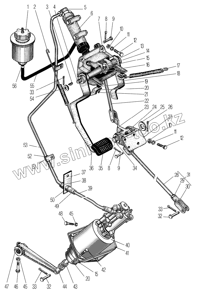 Каталог запасных частей к технике: УралАЗ УРАЛ-4320-60. Привод педалей сцепления и тормоза
