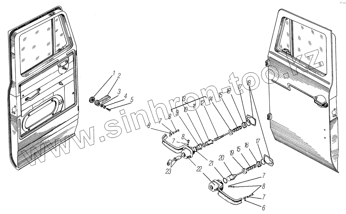 Каталог запасных частей к технике: УралАЗ УРАЛ-4320-60. Ручки двери