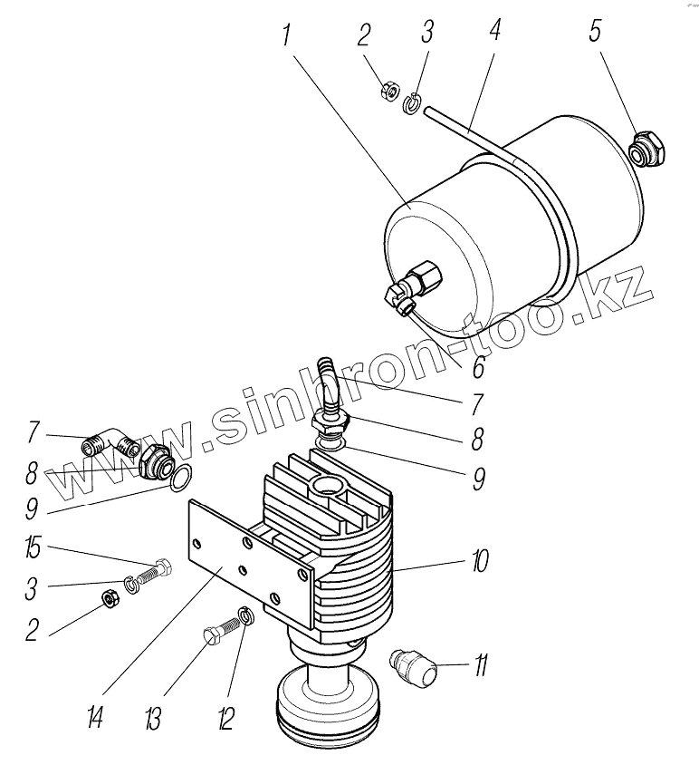 Каталог запасных частей к технике: УралАЗ УРАЛ-4320-60. Установка баллона адсорбера и влагомаслоотделителя