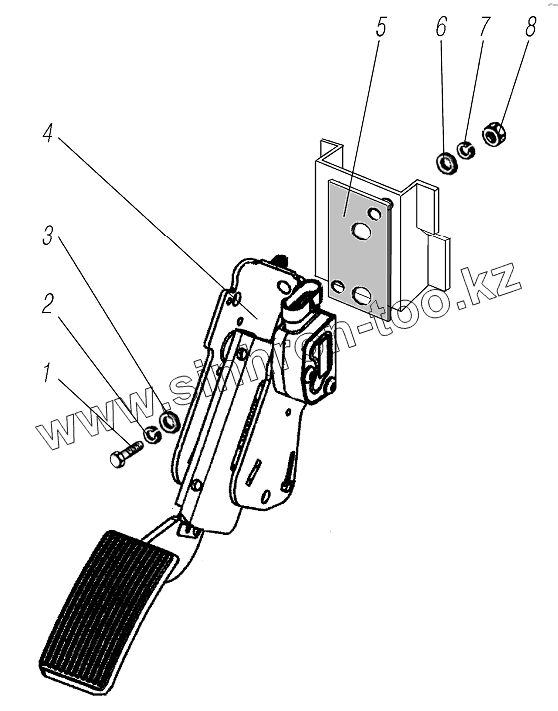 Каталог запасных частей к технике: УралАЗ УРАЛ-4320-60. Установка педали акселератора