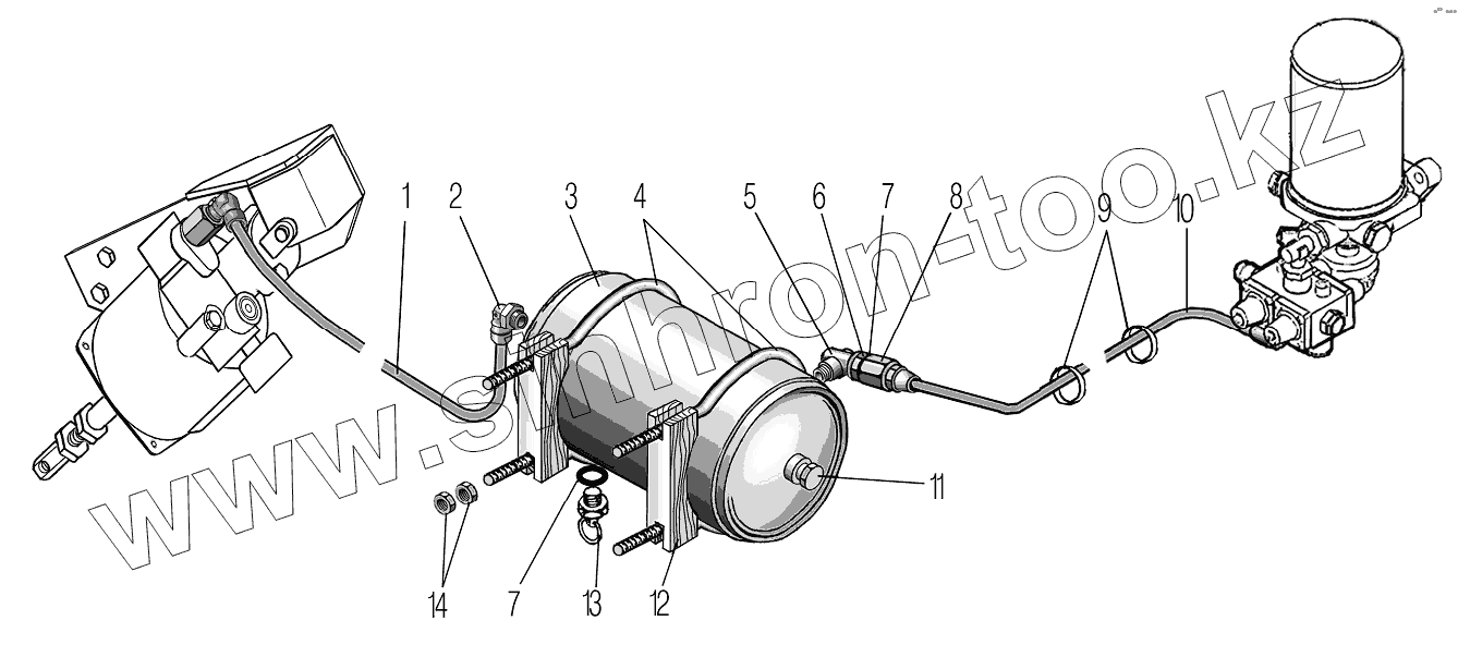 Каталог запасных частей к технике: УралАЗ УРАЛ-4320-60. Установка пневмосистемы выключения сцепления
