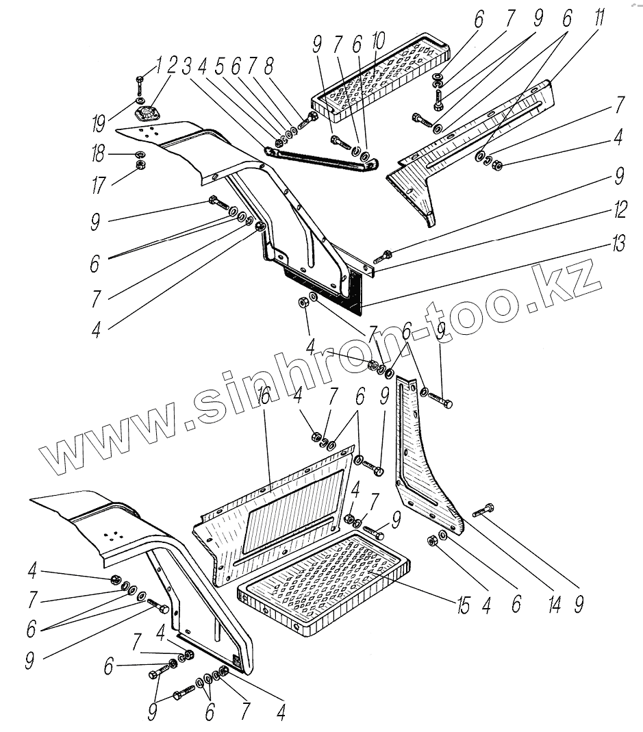Каталог запасных частей к технике: УралАЗ УРАЛ-4320-60. Установка правой и левой подножек