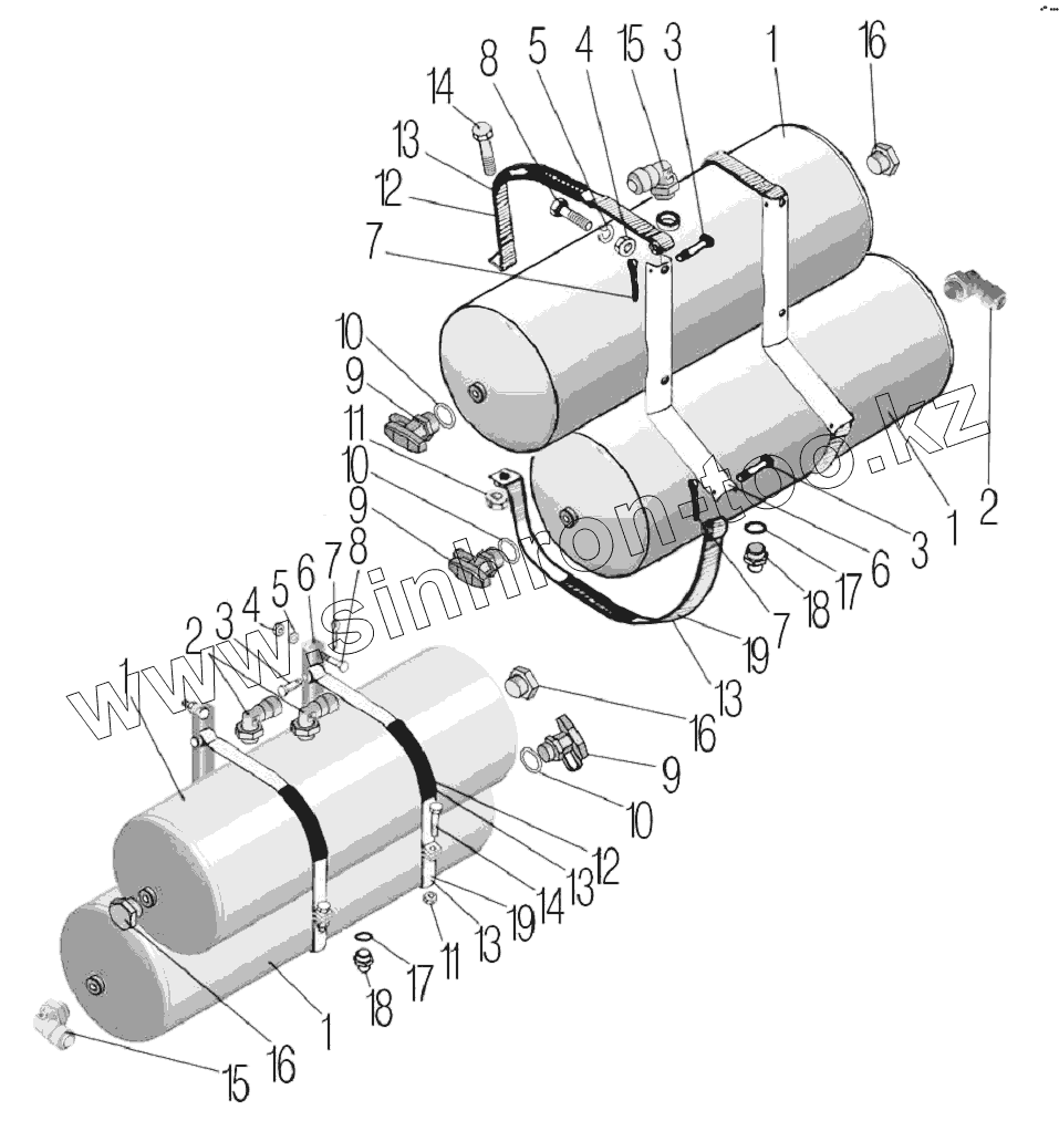 Каталог запасных частей к технике: УралАЗ УРАЛ-4320-60. Установка воздушных баллонов