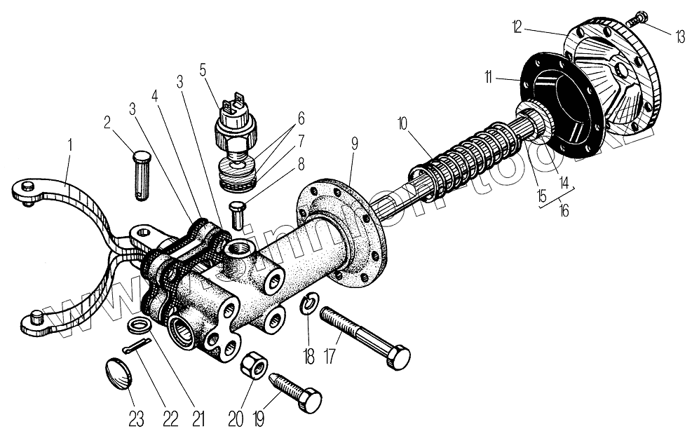 Каталог запасных частей к технике: УралАЗ УРАЛ-4320-61. Механизм включения блокировки дифференциала