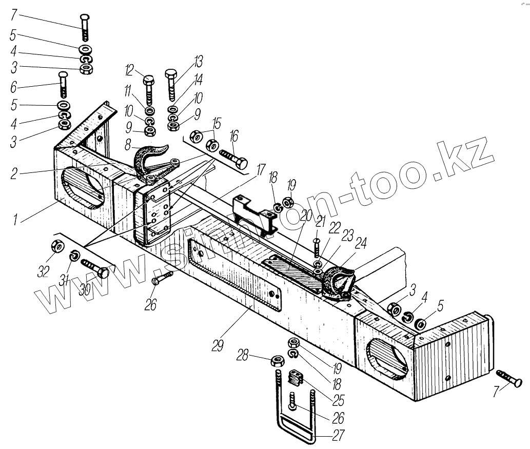 Каталог запасных частей к технике: УралАЗ УРАЛ-4320-61. Передний буфер и буксирные крюки