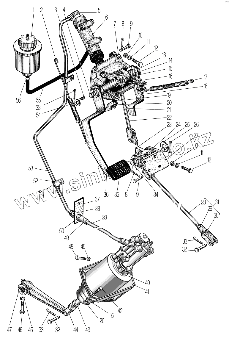 Каталог запасных частей к технике: УралАЗ УРАЛ-4320-61. Привод педалей сцепления и тормоза